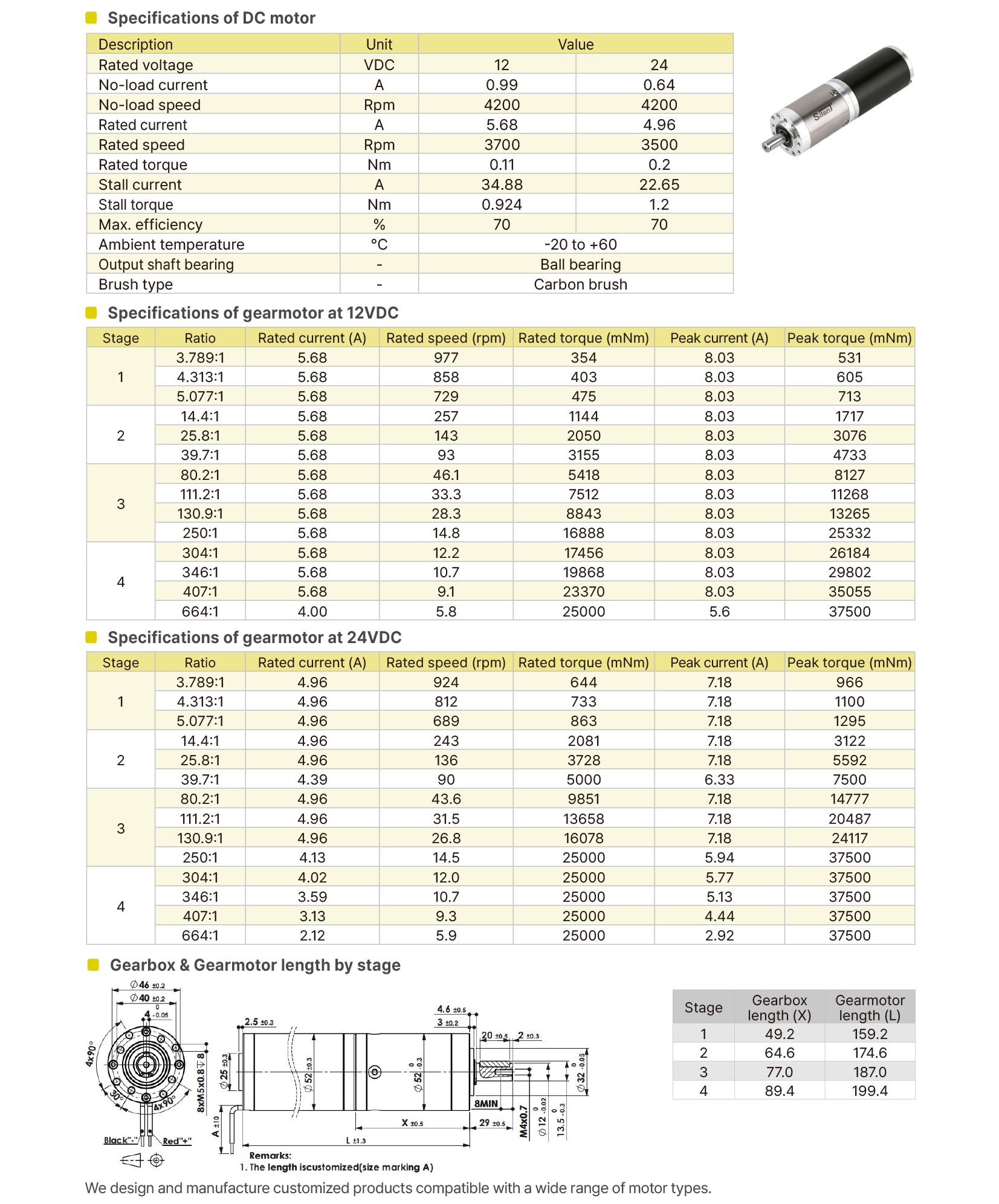 Outer diameter: Ø52 mmVoltage: 12 / 24 VDCReduction ratio: up to 664:1Rated torque: up to 25000 mNm